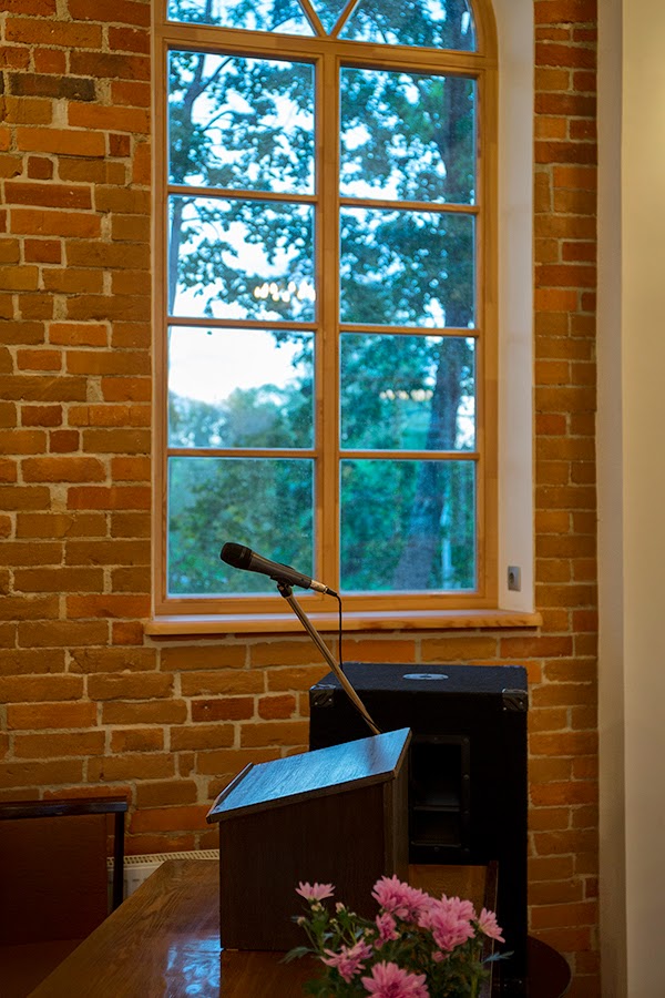 Lo que se me viene a la cabeza es que, ojalá estos curas miren por la ventana mientras están pronunciando su sermón… y conecten con el mas allá, que esta justo al otro al otro lado de esos ventanales. El más allá es verde.